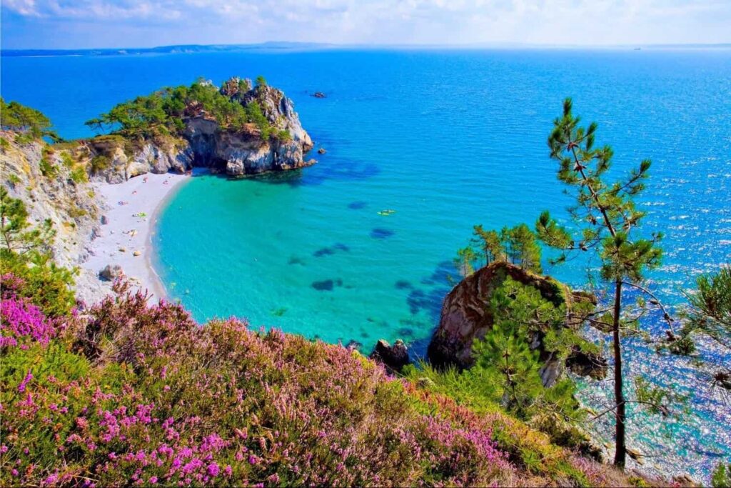 Un autre coup de cœur : la presqu’île de Crozon. Ses sentiers te font passer de plages dignes des Caraïbes (oui oui, l’eau est turquoise, même si elle est glaciale) à des falaises sculptées par les tempêtes. La pointe de Pen-Hir et ses fameux “Tas de Pois”, ça reste une image gravée. Et la lumière en fin de journée… je trouve que c’est un spectacle à lui tout seul. Tu te poses, tu respires, et t’as plus envie de repartir.